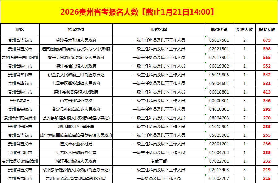 2026年貴州省考報名人數(shù)(截止1月21日14時).xlsx