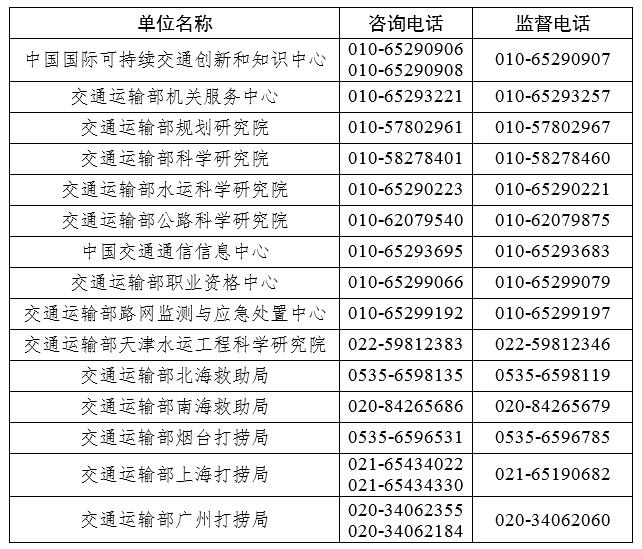 (四)交通運(yùn)輸部所屬事業(yè)單位2026年度第三批統(tǒng)一公開(kāi)招聘工作各招聘單位報(bào)名聯(lián)系電話: