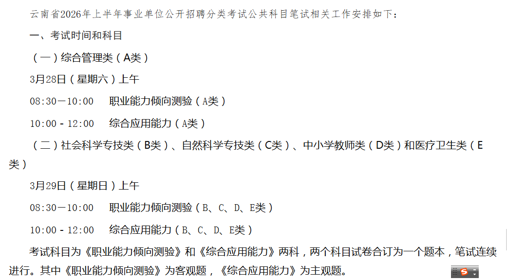 原標(biāo)題:云南省2026年上半年事業(yè)單位公開招聘分類考試公共科目筆試相關(guān)工作安排
