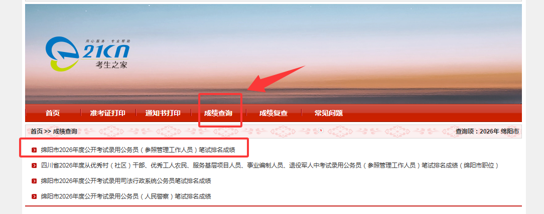 2026年四川考試錄用公務(wù)員筆試成績排名查詢?nèi)肟?/span>